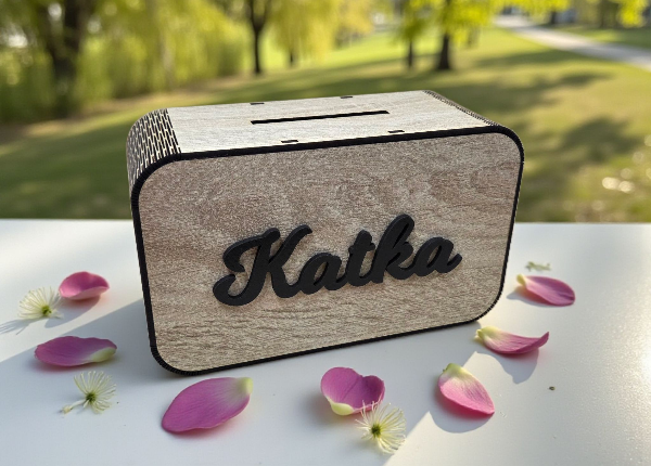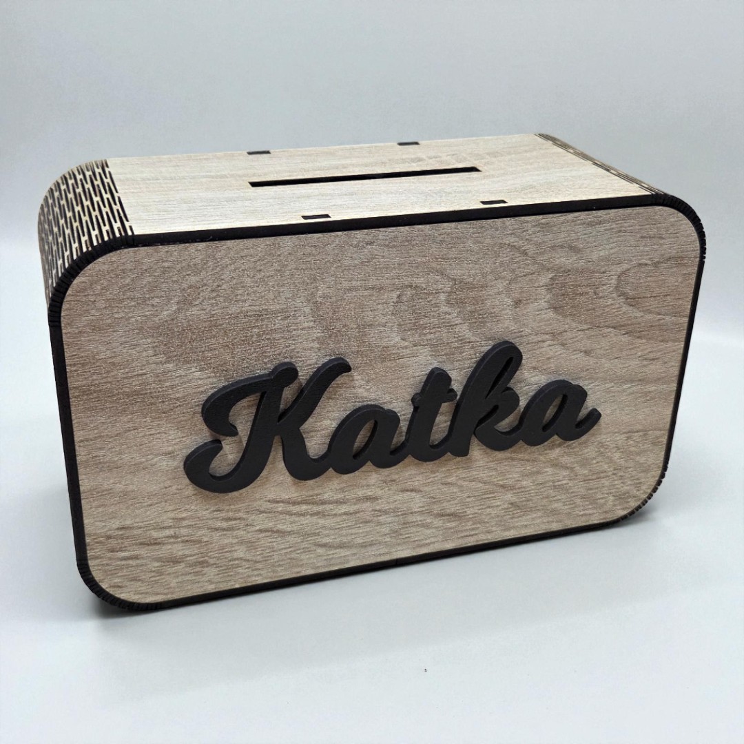 Zobrazit víceDřevěná 3D pokladnička se jménem nebo nápisem | Dárek na míru