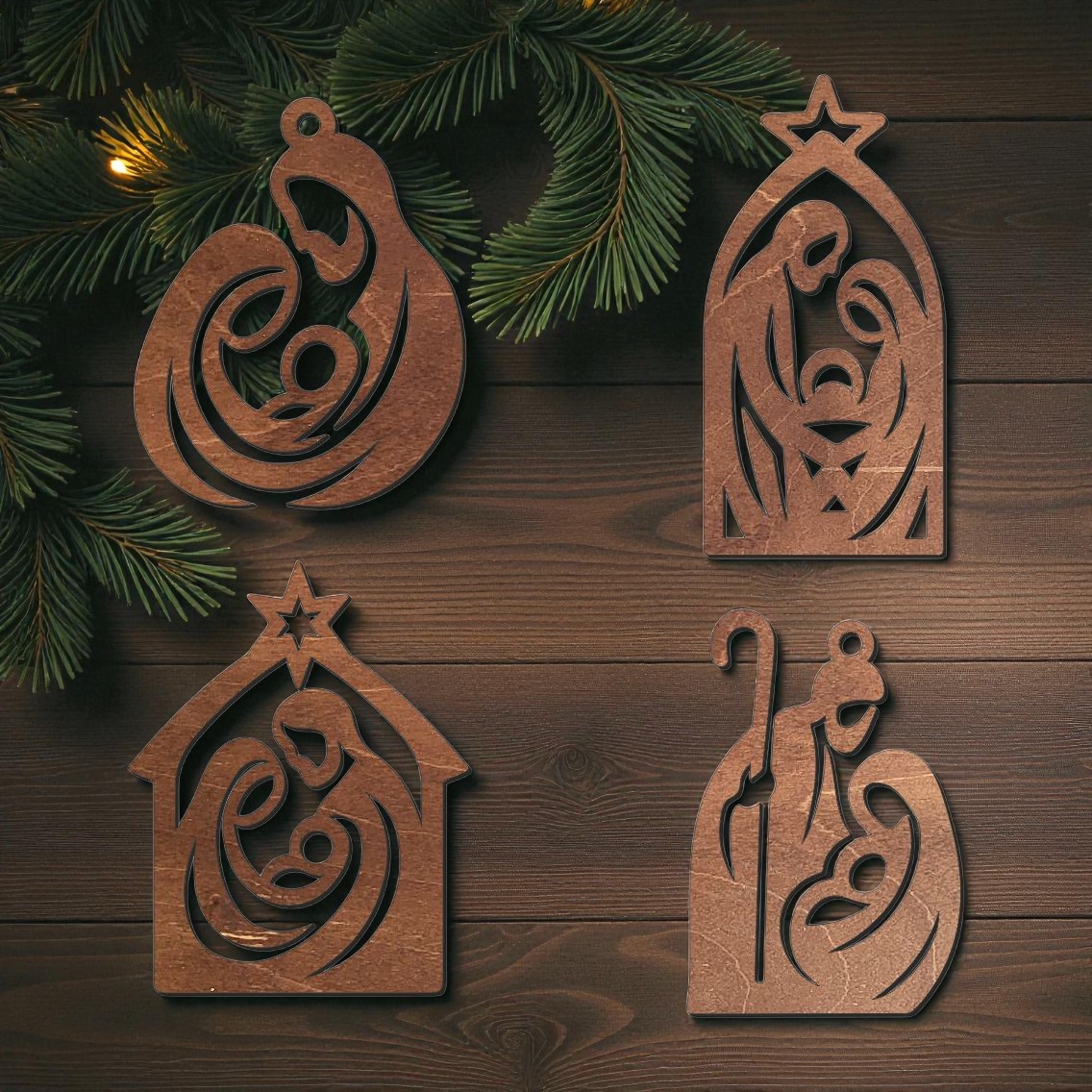 Ozdoby nabízíme samostatně ve čtyřech variantách, ze kterých si můžete vybrat podle svého vkusu (vzor 1, vzor 2, vzor 3 nebo vzor 4). Každý motiv zobrazuje jinou podobu Svaté rodiny, betléma či pastýře s holí.