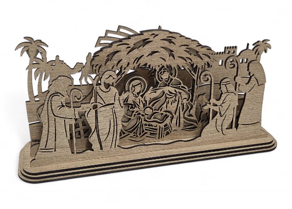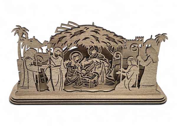 Každý prvek betlému je vyroben s citem a řemeslnou přesností. Postavy Svaté rodiny mají jemné, harmonické linie, pastýři a zvířata působí tiše a pokojně a celá scéna vyjadřuje něhu okamžiku narození.
