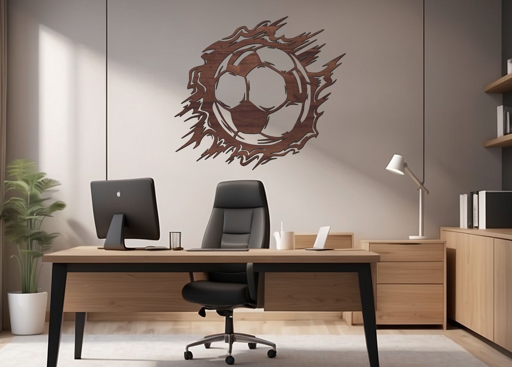 Tento dřevěný obraz energie fotbalu zachycuje sílu, rychlost a vášeň pro hru ⚽. Vyřezaný motiv fotbalového míče symbolizuje pohyb, napětí a radost ze sportu. Zpracován z kvalitního HDF dřeva (3 mm) s precizními detaily, skvěle doplní dětský pokoj, klub nebo sportovní kancelář.Každý kus je vyřezán laserem s vysokou přesností. Dřevo dodává sportovnímu motivu přirozenou eleganci a trvalou hodnotu.
