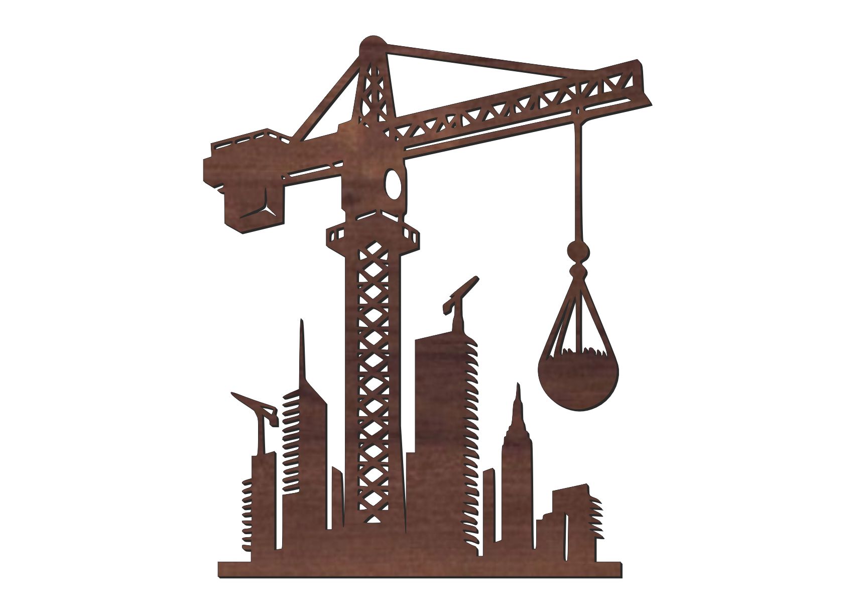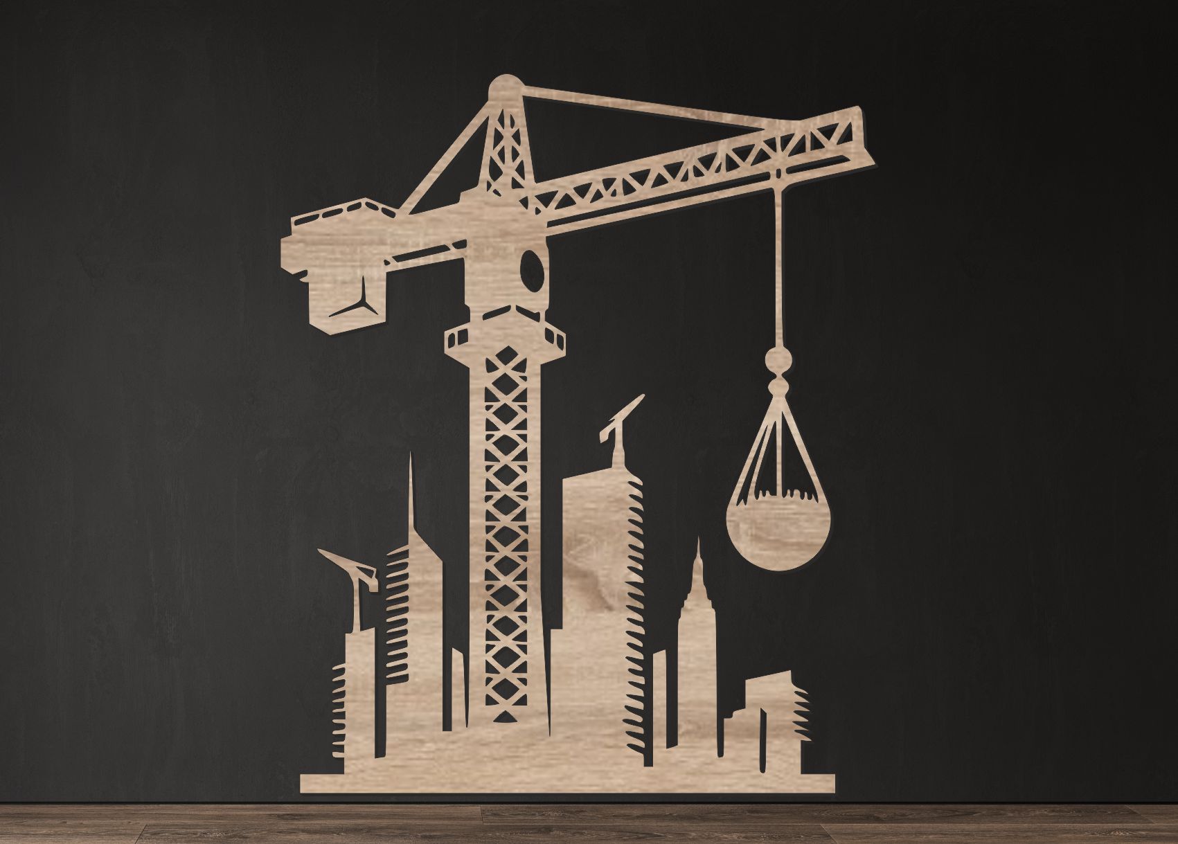Dřevěný obraz na stěnu – Jeřáb na stavbě