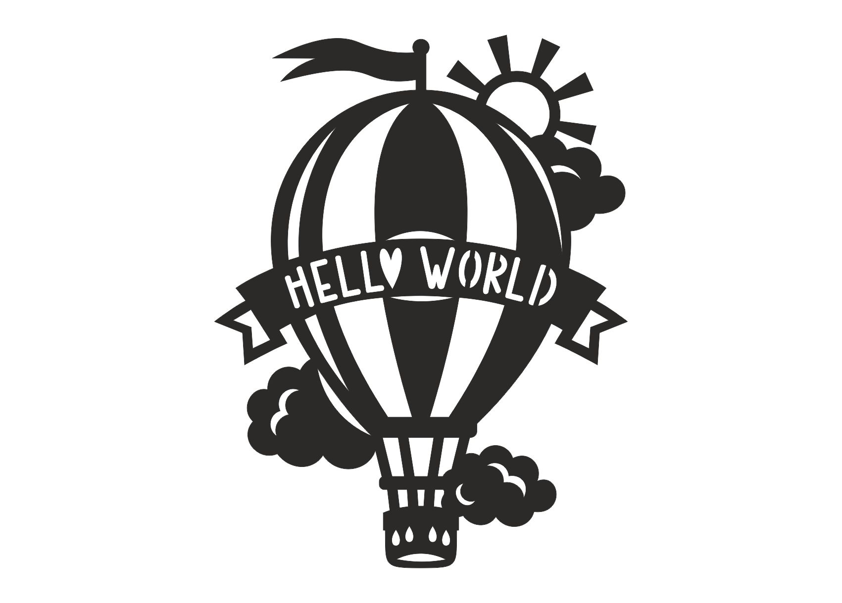 Dřevěný obrázek do dětského pokoje – Balón Hello World