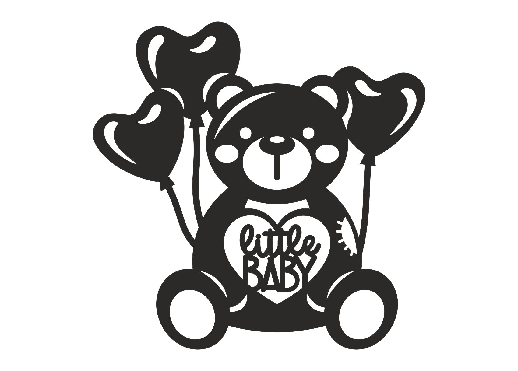 Dřevěný obrázek s motivem medvídka s balónky ve tvaru srdce a nápisem „Little Baby“ je krásnou dekorací pro dětský pokoj.