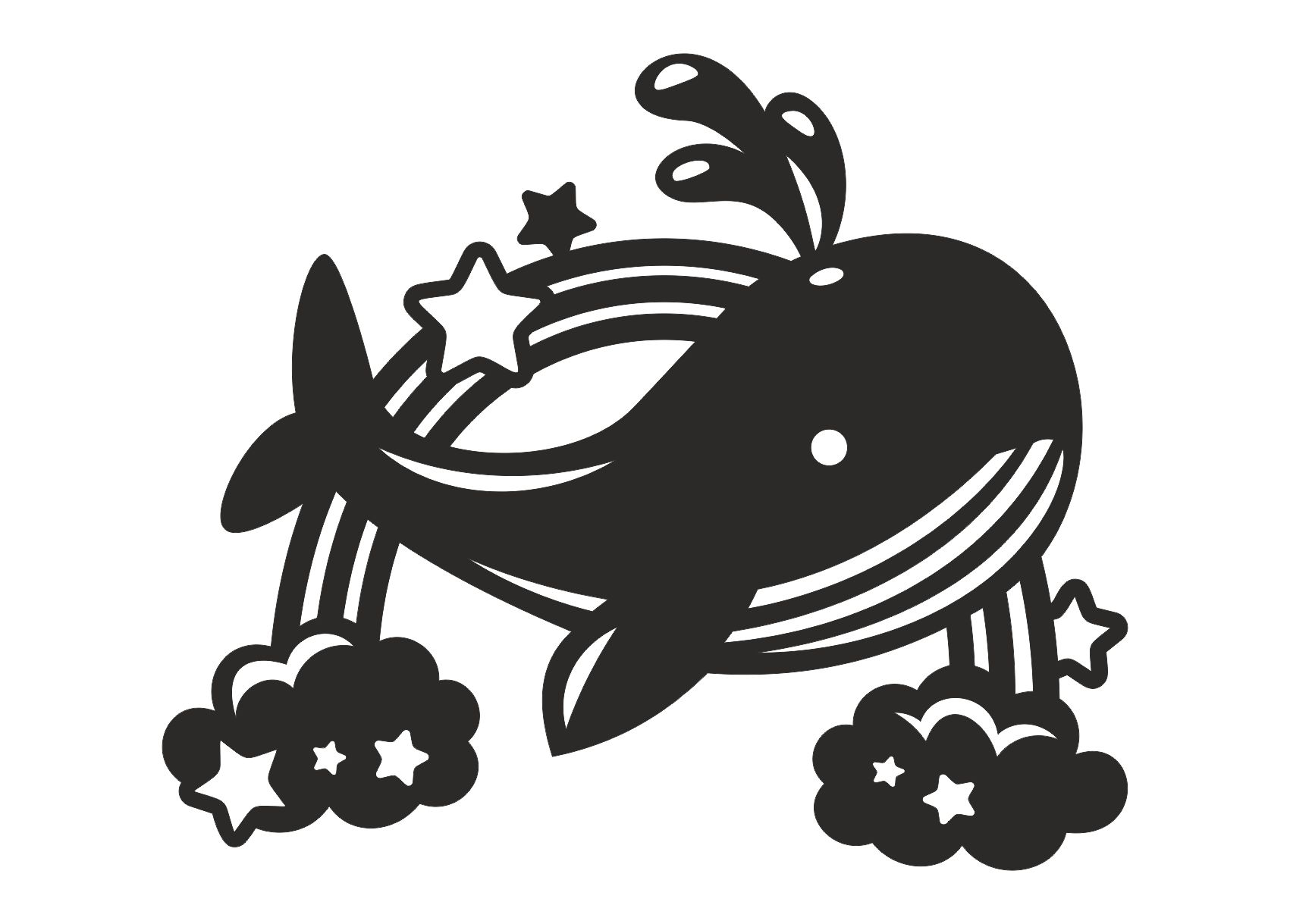 Dřevěný obrázek s motivem velryby plující po duze rozzáří dětský pokoj jemnými tvary a veselým motivem.