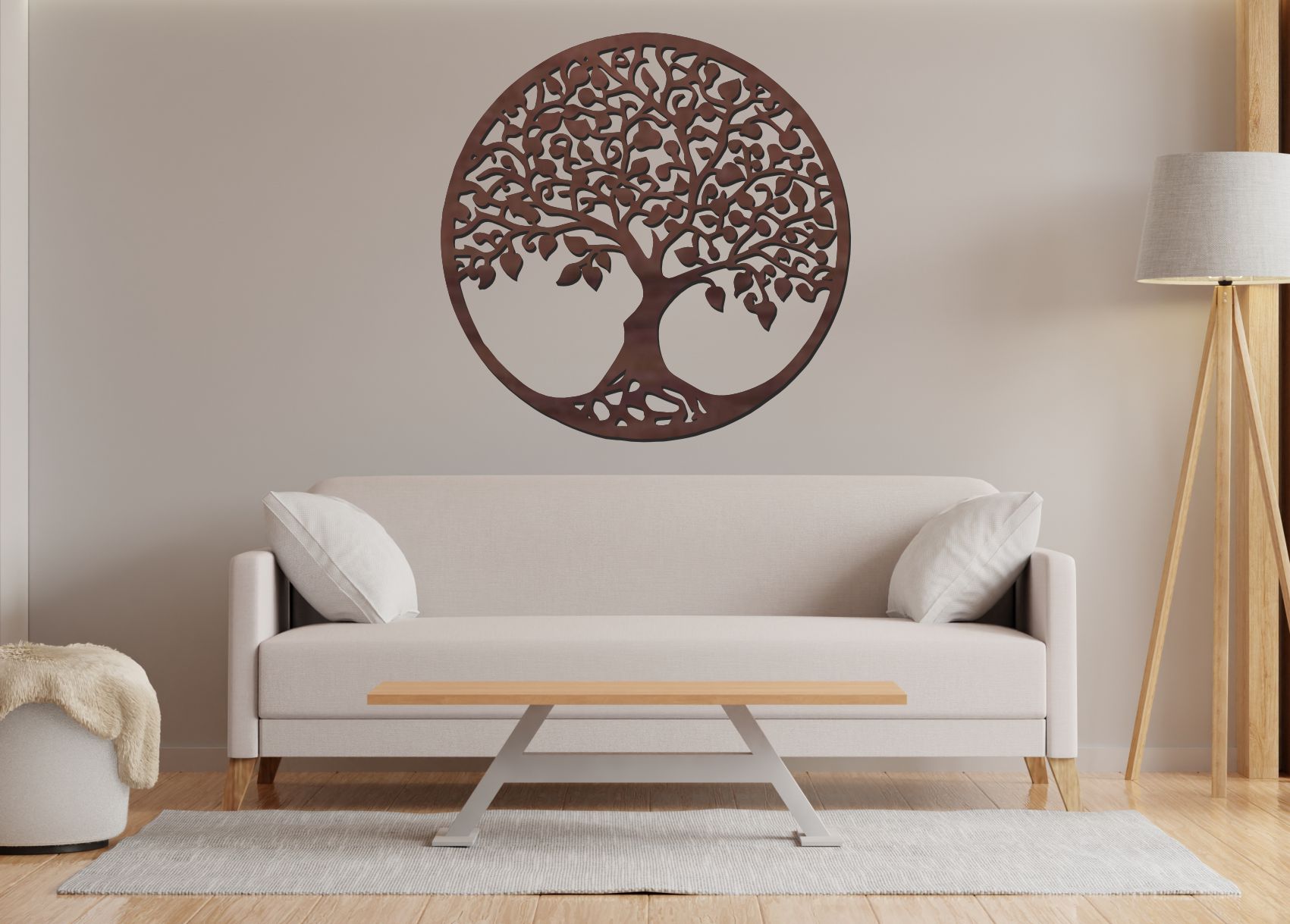 Tento dřevěný strom života na zeď zaujme čistou siluetou a harmonicky rozloženou korunou. Jemné větvení působí elegantně a přirozeně, díky čemuž se hodí do moderního i klasického interiéru. Kruhový tvar dodává dekoraci vyváženost a stabilitu.