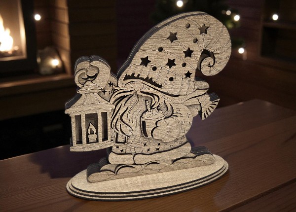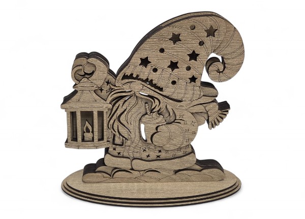 Dřevěný vánoční skřítek s lampášem – sváteční dekorace