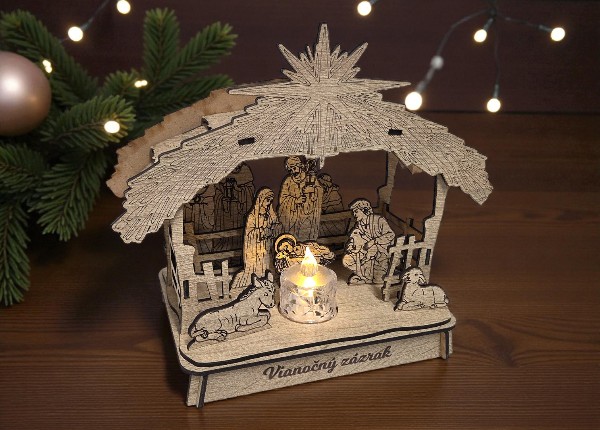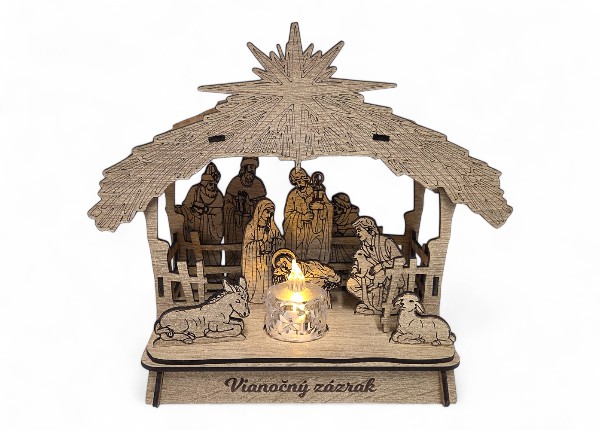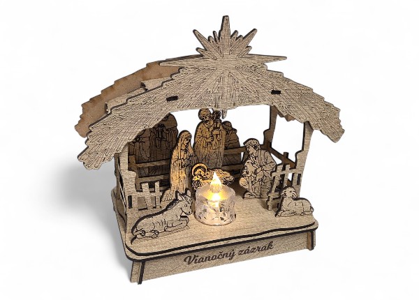 Betlém je vyroben z kvalitního dřeva, které mu dodává přírodní a elegantní vzhled 🌟. Detailní laserové vyřezávání zajišťuje jemný, moderní vzhled se zachováním klasické vánoční symboliky.