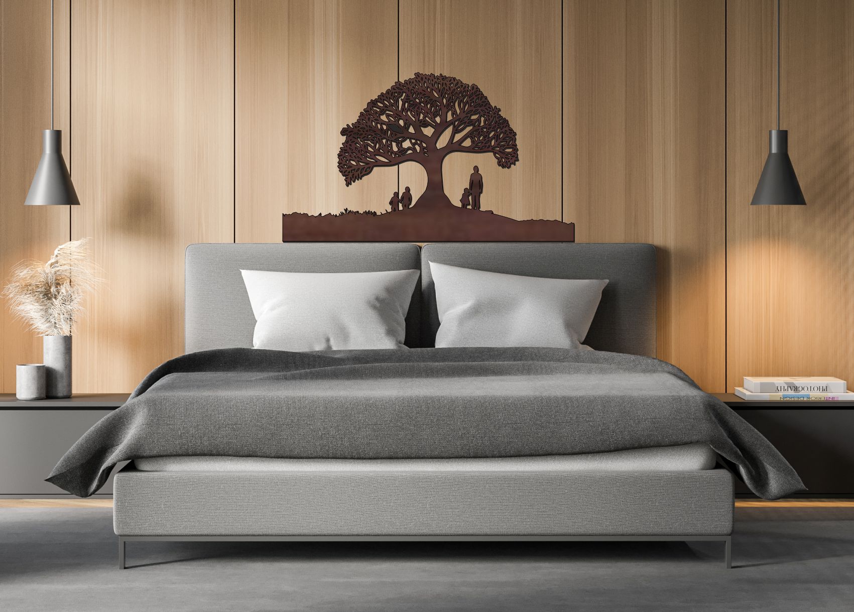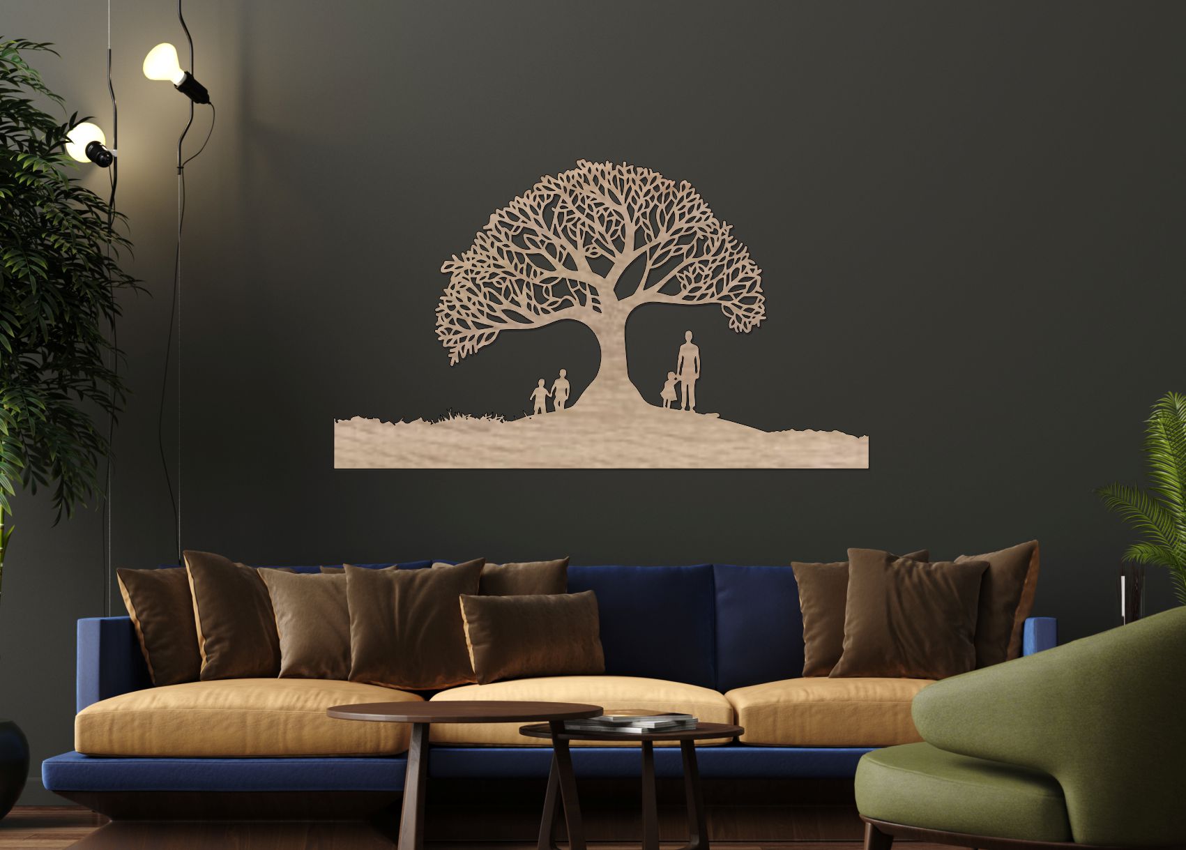 je moderní dřevěný strom života na zeď, který symbolizuje sílu rodiny, stabilitu a propojení generací. Detailně vyřezávaná koruna představuje růst a budoucnost, postavy pod stromem zdůrazňují hodnotu domova a blízkosti. Tento...