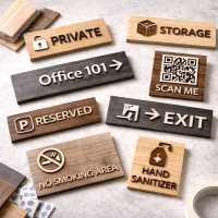Při výrobě používáme kvalitní HDF dřevo a dýhu v různých tloušťkách, které umožňují dosáhnout hladkého povrchu, přesných detailů a profesionálního vzhledu. Kromě dřeva pracujeme také s plasty a gravírovacími plasty, díky čemu dokážeme vytvořit moderní i kontrastní designy.